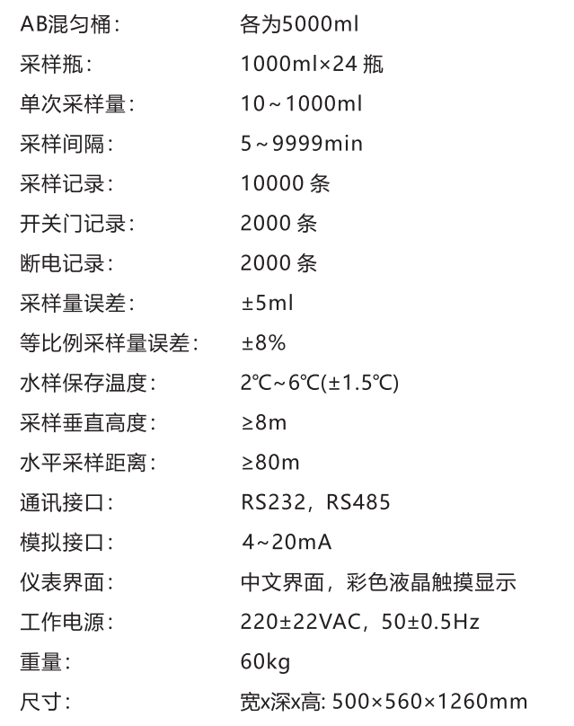 產(chǎn)品簡介: 水質(zhì)自動采樣器A360的產(chǎn)品特點有:AB雙桶混合采樣;水質(zhì)超標(biāo)留樣;自動排空清洗;樣品冷藏保存;具有人工取樣口;自動記錄;斷電保護;遠程控制