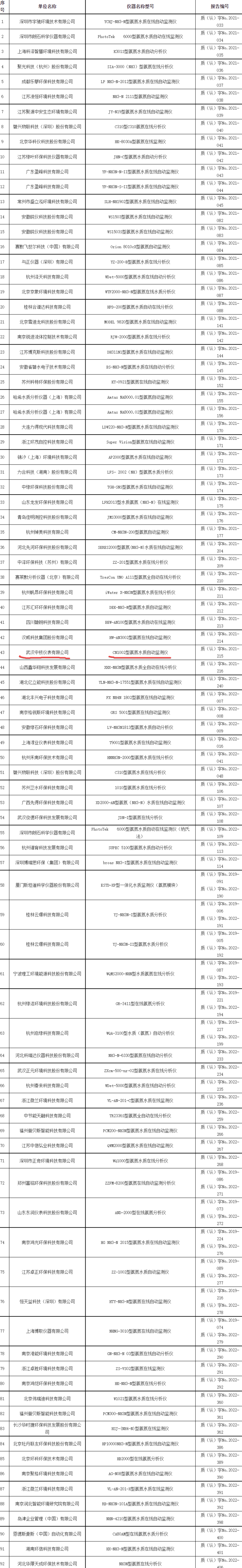 氨氮水質(zhì)在線自動監(jiān)測儀適用性檢測合格名錄(符合HJ 101-2019標(biāo)準(zhǔn)) (截至2022年12月31日)