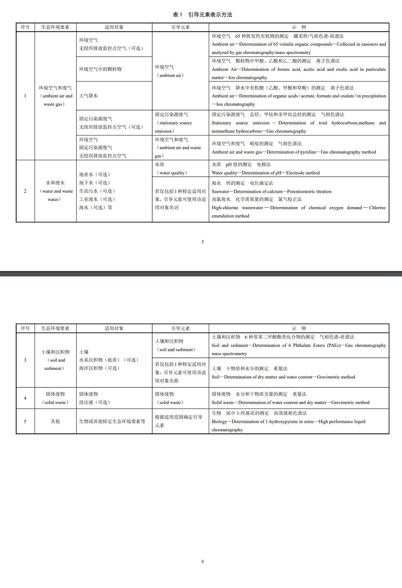 其中,主體元素由監(jiān)測(cè)項(xiàng)目和監(jiān)測(cè)目的構(gòu)成,引導(dǎo)元素未充分體現(xiàn)生態(tài)環(huán)境要素特點(diǎn)時(shí),可在主體元素中補(bǔ)充說(shuō)明。主體元素中監(jiān)測(cè)項(xiàng)目包括化學(xué)元素、化合物、混合物、生物體或特性等,應(yīng)優(yōu)先選擇通用的規(guī)范名詞。